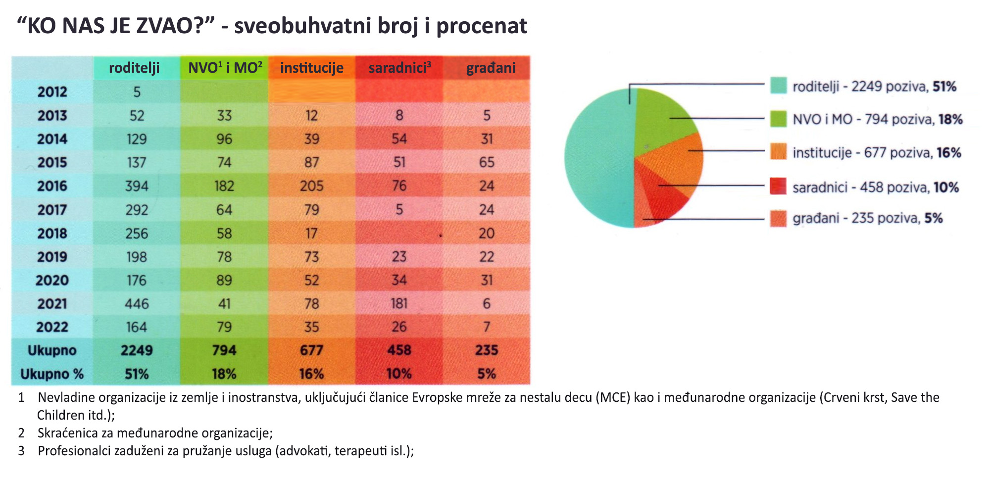 - svako ko sumnja ili ima saznanje da je neko dete nestalo;